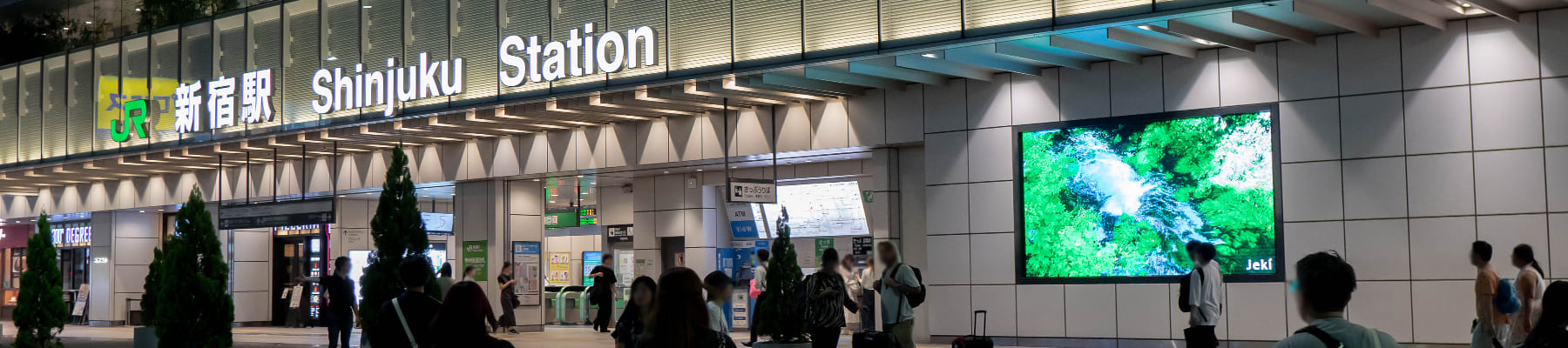 世界有数の乗降客数を誇るJR新宿駅。甲州街道改札脇の外壁には、以前から60インチ液晶ディスプレイ9面を組み合わせた180インチの大型ビジョンが設置されていました。今回のリニューアルにより、より鮮明な映像表現が可能なLEDビジョンへと生まれ変わりました。