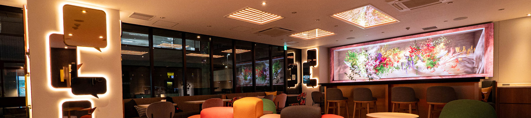 シーマは、このLEDビジョンを含む映像音響システムの設計から施工までを担当。ガーナーホテル大阪本町駅のソーシャルハブにふさわしい演出を実現し、空間全体の価値向上に寄与しました。